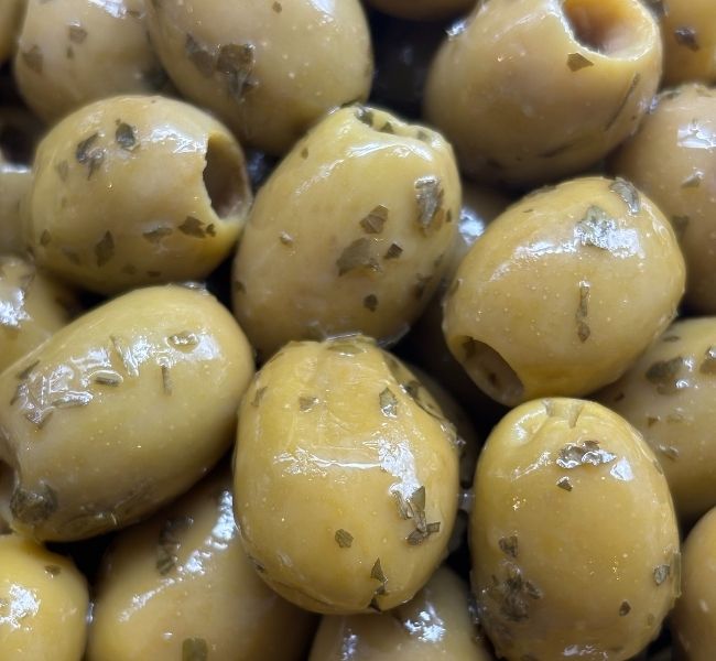 Halkidiki Olives, Lemon Juice, Olive & Vegetable Oil, Dried Parsley